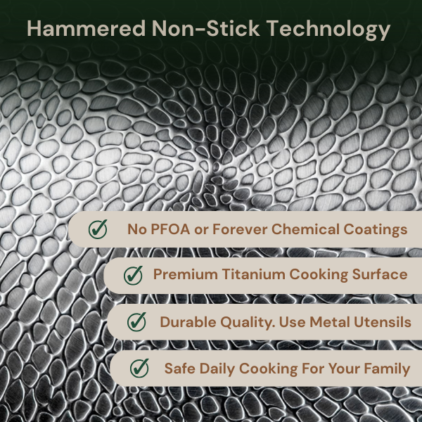 Designed for high heat, metal utensils, and real daily use, its Titanium cooking surface delivers smooth non-stick food release without the gradual breakdown that forces most coated pans to be replaced within 12–18 months.